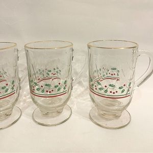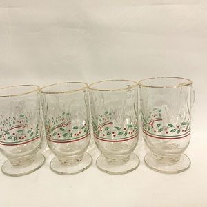 Vintage Christmas Drinking Glasses Set of 4 Holly Berries Rock Tumbler