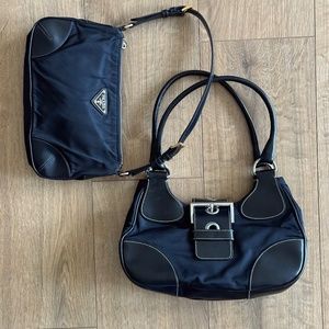 Authentic Prada Moon Bag. Excellent condition. Black nylon and leather. Silver hardware. Prada logo on the side. Spacious interior with zippered pocket. This cutie was recently remade by Prada, get the original vintage version for a fraction of the cost!