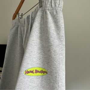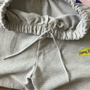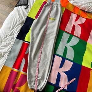 Soft cozy material, these are no longer made. Purchased as XL but i shrunk them, recommended for a small-medium. Good preloved condition, some cracking of the graphic. Tie at the waist can be adjusted for fit. No pockets