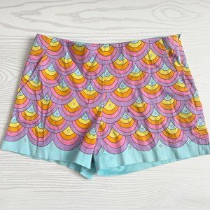 Trina Turk Mermaid Scale Shorts Pastel Summer Spring Casual Scallop Fish Colorful Bright Retro Florida Topical Vacation Breezy Comfy Lightweight Pocket Mod MCM