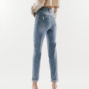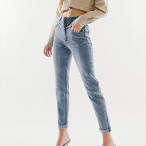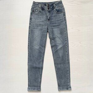 Kancan Ultra Hi-rise Mom Fit Jeans Distressed Slim Straight Leg Light Acid Wash Stretch Denim KZ0012MRX