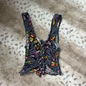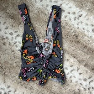 So cute, stretchy material. Best fits extra small to small. Good preloved condition, some strings on the sides that can be cut off