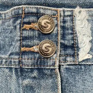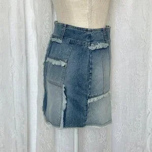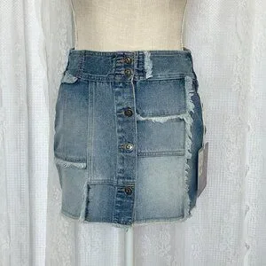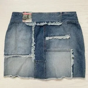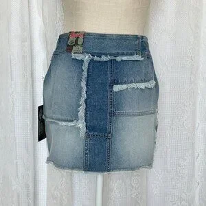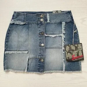 Vintage Squeeze Stephen Hardy Patchwork Denim Mini Skirt Button Jean 90s Deadstock Fringe Boho Hippie Summer Spring Festival Coachella Stagecoach Western EDC Mallcore