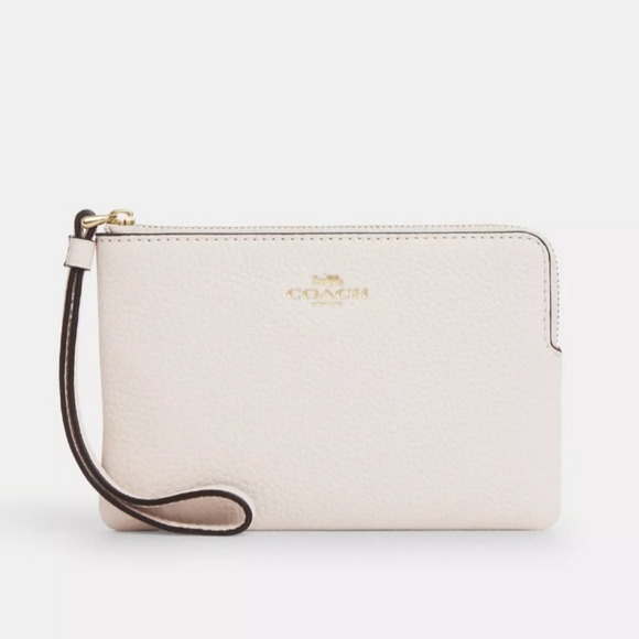 NWT Coach Chalk W Gold Hardware Corner Zip Wristlet/Beautiful White & Gold