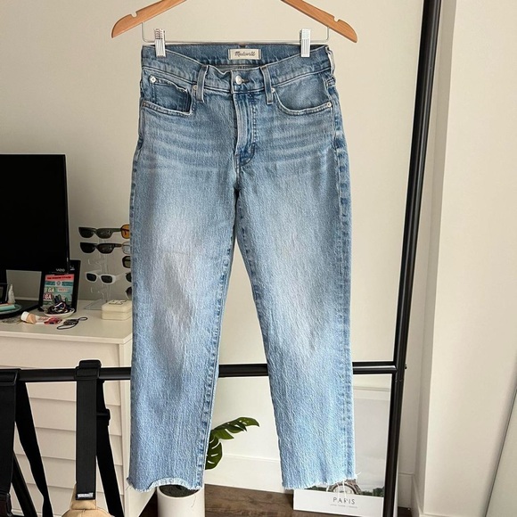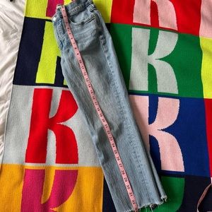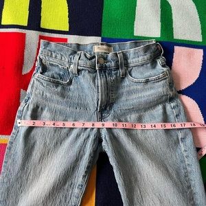 Mid wash denim, size 26. Good preloved condition, some puckering on the front.
