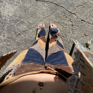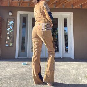 Made by Wilson’s Leather, this vintage 90s two piece set of pants and a jacket features denim, suede and crochet all in one outfit 🥵 I’m not even sure if it was ever worn. There are a few tiny stains that would probably come out with a dry cleaning.