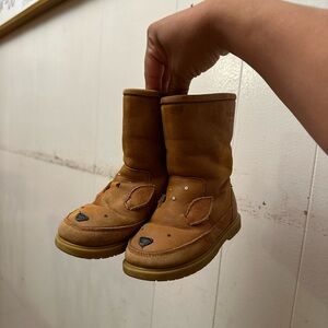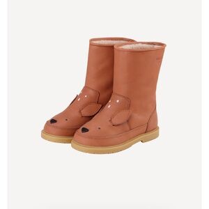 My deer one! Our classic Wadudu boots will take your kid anywhere! A Donsje signature design makes this pair instantly recognisable thanks to intricate leather details and the deer snout. Made with premium leather and sheep wool, these boots are comfortable and effortlessly easy for those tiny fingers to put on and off.
