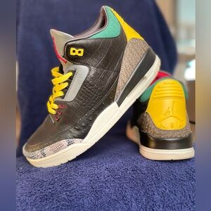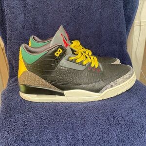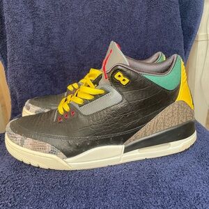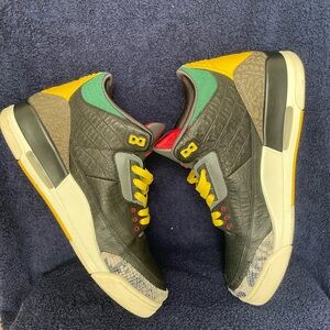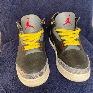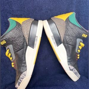 AJ3 Animal Instinct 2s for sale. Size 12. Not sure I have any other laces but can check if you want an alternate from the yellow ones. No box. Second owner. I’ve worn them twice.