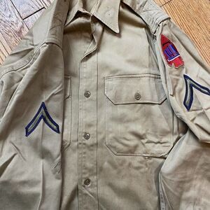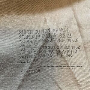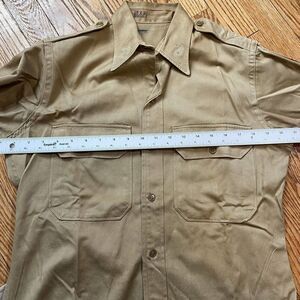 This vintage US Issued Army Khaki Long Sleeve Shirt from the 1950s is a must-have for militaria collectors. The shirt features patches from the Korean War and is a genuine and original item that has not been modified in any way.