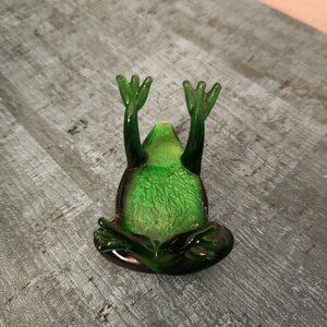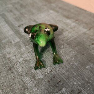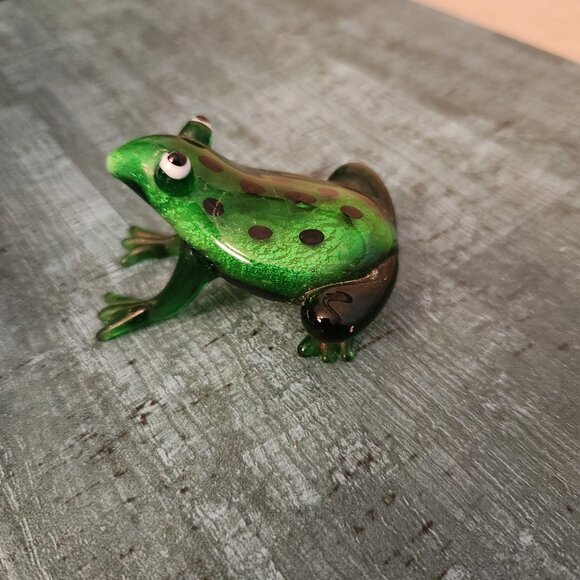 Miniature Handblown Art Glass Frog Figurine Green Black Dot Frog.