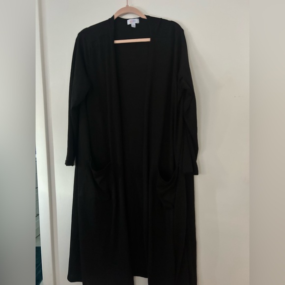 Great pre owner conditions Duster XL Lularoe color black 30” arm pit yo arm pit 45” long pockets at front long slevess