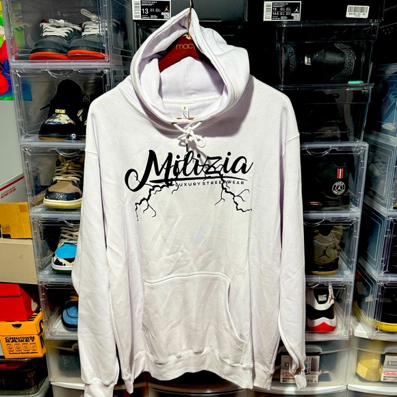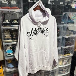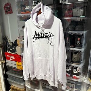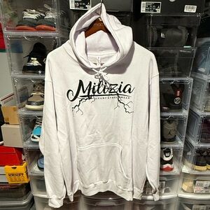 Milizia 2XL white pullover hoodie that says Luxury street wear on the front and against the odds on the back! Expensive merch Zuni sportswear relax fit very popular in LA! Once again, I’ll let you know this is the cheapest place on Poshmark and around for that matter you will not find cheaper namebrand clothes anywhere grab them while you can. Thanks for looking. Have a great holiday.