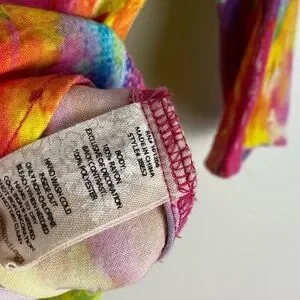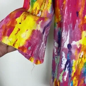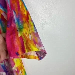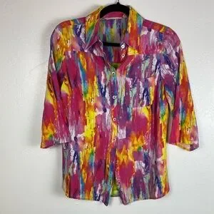 Soft Surroundings Tie Dye Embroidered Bright Fun Multicolor Unique Button Down 3/4 sleeve Shirt women’s Small petite