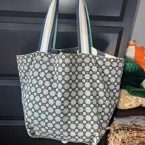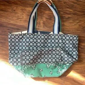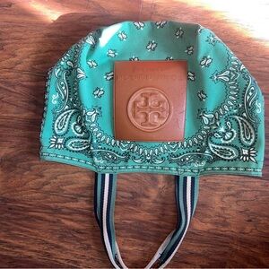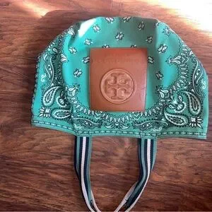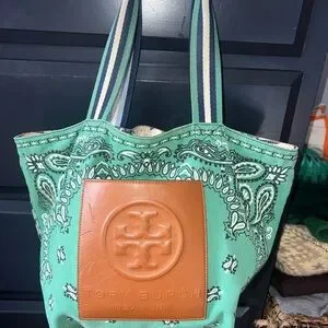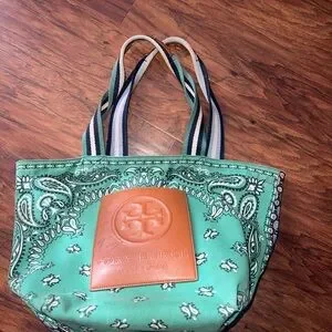 Elevate your style with the Tory Burch Green Paisley Tote Bag. This chic bag features a vibrant green color and a unique paisley design, perfect for any occasion. Carry your essentials in style with this elegant tote.