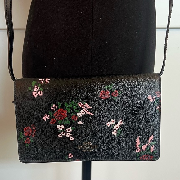 COACH FOLDOVER CROSSBODY CLUTCH WITH CROSS STITCH FLORAL PRINT