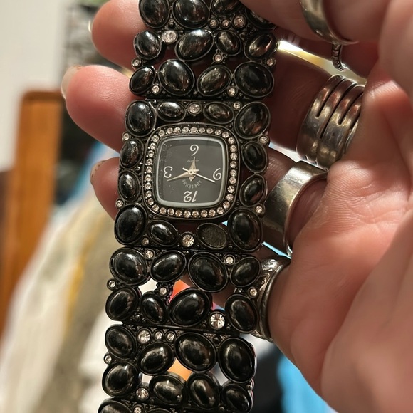 Adrienne Women's Quartz Analog Watch SilverTone Cabochon w/Rhinestone Vintage