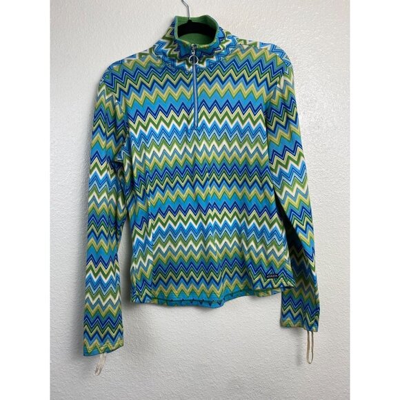 Vintage Athleta Chevron Sweaters Womens size Medium Blue Green Athleisure