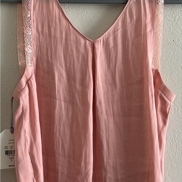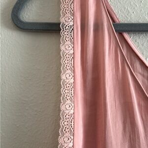 Experience comfort and style with this pink lace trim pajama top. Perfect for a cozy night's sleep.