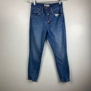 Madewell 9” High Rise Skinny Crop Button Fly Blue Jeans women’s size 26 Approx measurements on photos Overall good used condition Please check photos DS