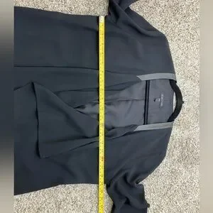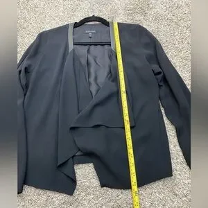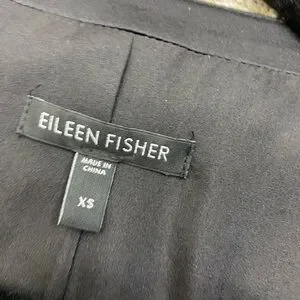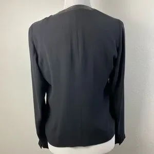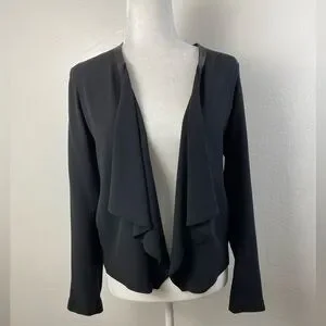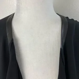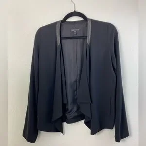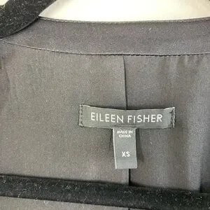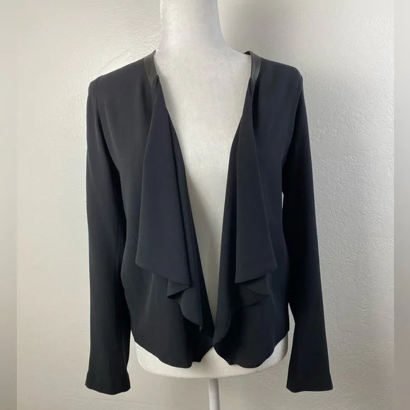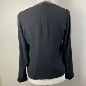 EILEEN FISHER Silk Leather Trim Open front Black Blazer Cardigan long Sleeve minimalist Career Work contemporary Women’s XS