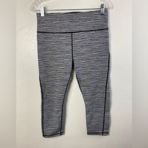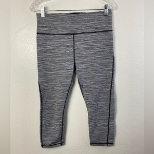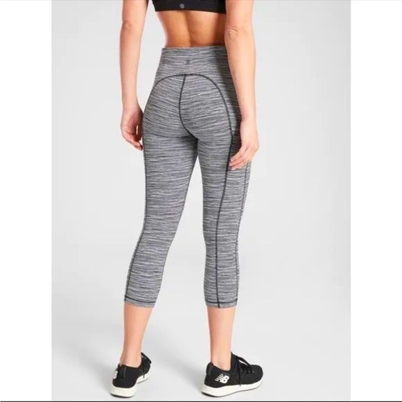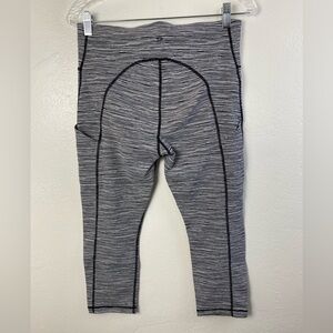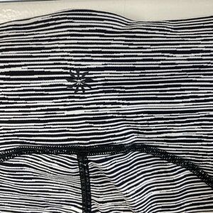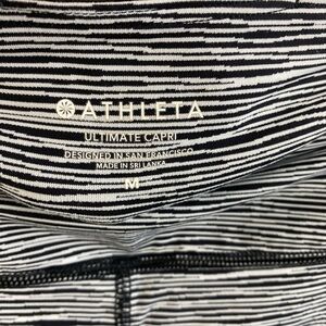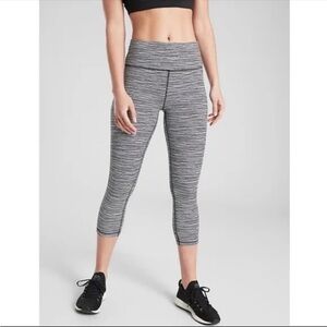 Athleta Black White Ultimate Linear Lines workout Gum Pinstripe Black White Capri Leggings Athletic Running Medium