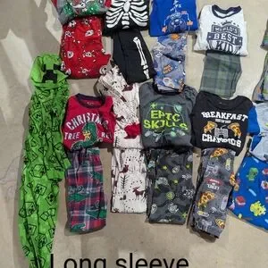 Vibrant collection of kids' pajama sets. Includes fun prints and bright colors like blue, yellow, and gray. Perfect for bedtime adventures.