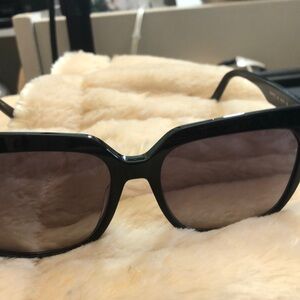 These MCM sunglasses feature a bold black geometric frame with thick borders, offering a contemporary and fashionable look. The gradient lenses transition from dark to light, adding a touch of sophistication to your style. Perfect for making a statement, these sunglasses embody modern luxury.