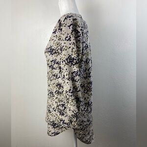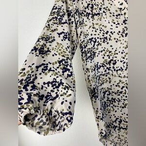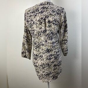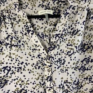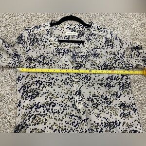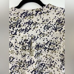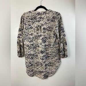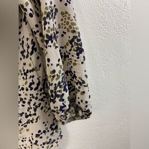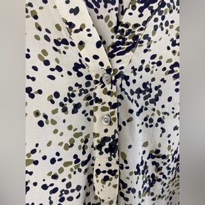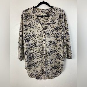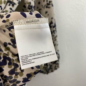 Amour Vert Silk Speckled Leopard Career Work Academia V-Neck Shirt Small Half Button Closure
