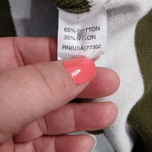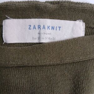 This ZARA sweater is a green and white striped pullover with a square neckline and 3/4 sleeves. Made of a tight-knit nylon and cotton blend fabric, it features a relaxed fit and an oversized style with a rear bottom hem slit. The classic, preppy design gives off a 90s vibe, suitable for all seasons and machine washable for easy care. Perfect for a cozy yet stylish look in winter, summer, fall, or spring.