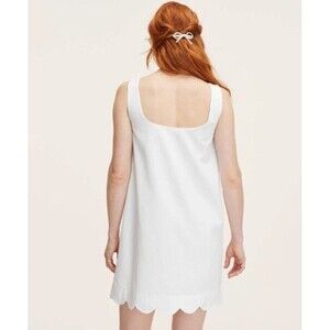 The Kate Spade New York x Target Women's Scalloped Mini Shift Dress in size 4X is a stylish and versatile option for various occasions. Made from a blend of cotton, recycled cotton, and rayon, this white dress features a square neckline, pullover closure, and a flattering short length. The shift style and glam theme make it perfect for parties, weddings, and casual outings during the summer, fall, or spring seasons. With machine wash and tumble dry care instructions, this dress is both comfortable and easy to maintain. Designed for plus-size women, this dress from a reputable brand offers a classic and sophisticated look.