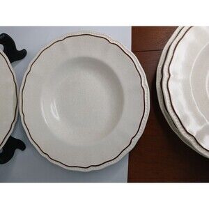 This set of four Kensington Staffordshire soup bowls is the perfect addition to your dinnerware collection. The round, 9-inch stoneware bowls feature a beautiful beige color and are perfect for serving soup, cereal, or any other dish. Made in the United Kingdom, these bowls are a great choice for collectors or anyone looking to add a touch of elegance to their table setting. The set includes four bowls and is perfect for both daily use and special occasions. Add these lovely bowls to your collection today!