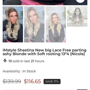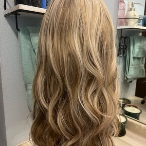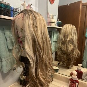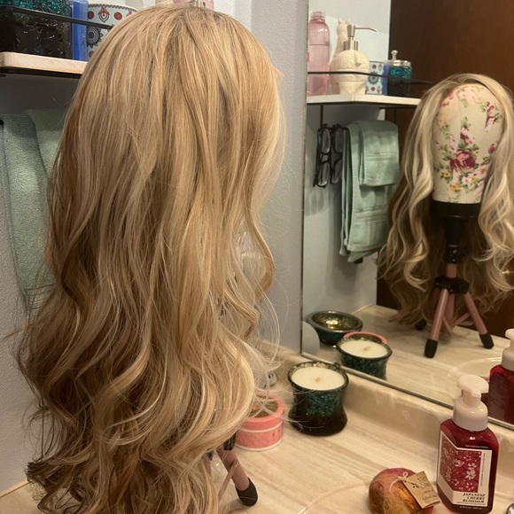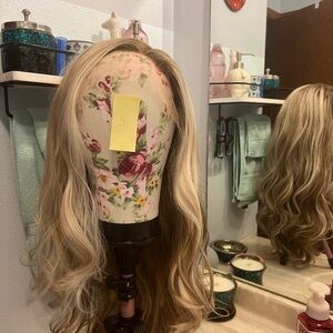 New without tags gorgeous highlighted wavy blonde wigs with free parting to make it your own. Beautiful soft fibers and such a pretty color blend!! Plus you can’t go wrong with IMStyle’s hairlines, they are impeccable.
