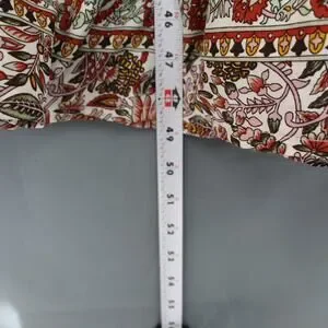 Comes with tassel tie waist and tiered skirt; striking pattern throughout with unique border design at hem.