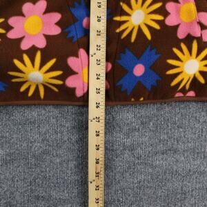 Color: Brown with bold yellow, pink, and blue floral allover print