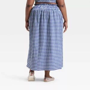The Universal Thread Smocked Maxi A-line Skirt & Top Set in Blue Gingham is a stylish and versatile addition to any woman's wardrobe. This plus-size set includes a long, lined skirt with a slit and elastic waist for comfort. The set is perfect for various occasions such as travel, parties, or casual outings, and the cotton material makes it easy to care for with machine washability. The retro-inspired gingham pattern adds a touch of Americana flair, while the set's lightweight and stretchy design is ideal for the summer and spring seasons. Made in Vietnam, this set from Universal Thread is a must-have for any fashion-forward woman.