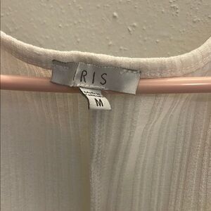 Elegant white maxi dress by Iris. Sleeveless design. Perfect for any occasion.
