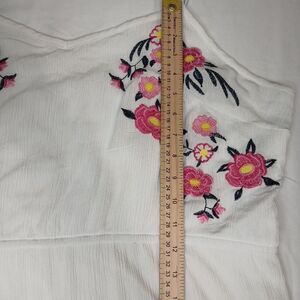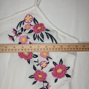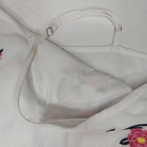 The Kelly Renee Embroidered Floral Maxi Lined Tiered Sun Dress in 2X is a stylish and versatile summer garment perfect for various occasions such as travel, weddings, parties, or casual outings. This sleeveless dress features a flattering V-neckline, a pullover closure, elastic waist, and adjustable straps for a comfortable fit. Made from lightweight polyester knit fabric in a classic white color with embroidered floral accents, this long dress is designed to evoke a floral, bohemian, or tropical theme, making it a perfect choice for the season. Easy to care for with machine washable instructions, this dress is a must-have for any woman's summer wardrobe.