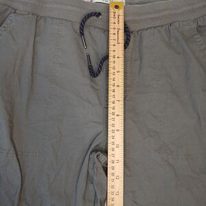 The Laguna Pants Mens Large Gray Ripstock Joggers are a stylish and versatile choice for men looking for a comfortable and fashionable option. These joggers feature a drawstring waist for a customizable fit, cinched ankles for a trendy look, and a tapered leg style for a modern silhouette. Made from a blend of spandex and cotton, these pants offer a flattering and comfortable fit for everyday wear. With a solid gray color and minimal design, these joggers are perfect for a variety of occasions including travel, casual outings, and workwear. The Laguna brand ensures quality and style that will keep you looking sharp and feeling comfortable.