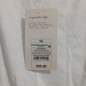 New with tags, but there is 2 very light spots on the back and the lining, will need to be washed before wear, (I believe it will wash out).