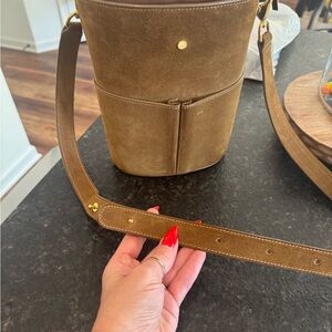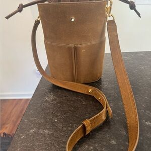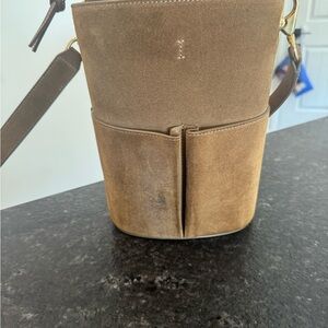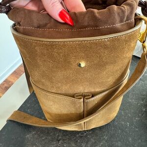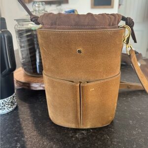 Exclusive edition RSVP Paris low five bucket bag in suede tobacco, beautiful fall color. Number 88/500. I have proof of purchase direct from rsvp less than a year old and only carried a few times. Bag shows light wear, suede has been sprayed and treated. There is one small spot on back side as pictured minimally noticeable and I was scared to attempt to clean it due to the material. I have original packaging and dust bag also