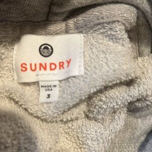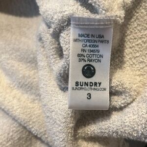 Sundry Chenille Striped Cropped Hoodie Pullover Sweatshirt Raw Edge Gray Size 3. I added a sundry size chart. Approximate measurements armpit armpit 19 1/2 inches length 21 1/2 inches. matching jogger pants available in size one in another listing. If interested in set, please let me know.
