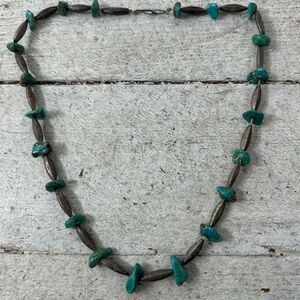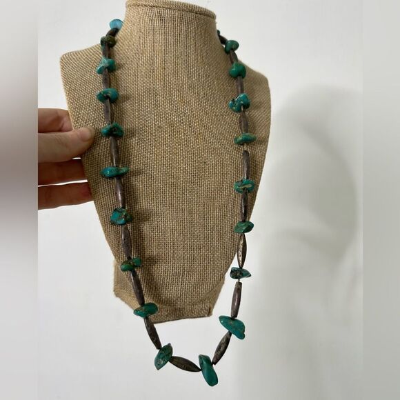 Vintage Old Pawn 40s Turquoise Chunk Sterling Navajo Pearl Necklace