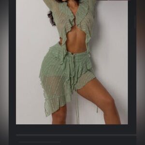 Elevate your style with this elegant green sheer blouse and skirt . Perfect for any occasion, this top offers a chic and sophisticated look. Only wore once