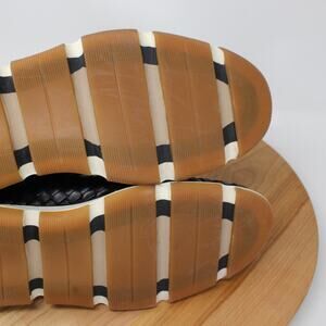 Color: Black upper, white midsole, tan outsole