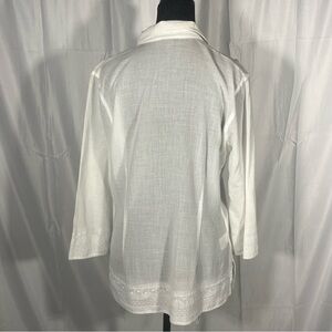 Chic cream blouse with button accents. Lightweight and stylish. Ideal for versatile wear. 100% cotton Length- 27 P2P-20.5