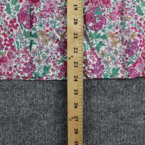 Made with Liberty Fabric, exclusive floral print in pink, purple, green, and yellow tones.