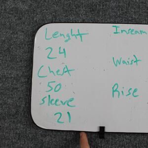 Measurements from photos/notes: Length 24 in, Chest 50 in, Sleeve 21 in.