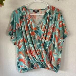 BELLE BY BELLDINI FAUX WRAP BLOUSE, LARGE. ELASTIC WAIST. SOFT.