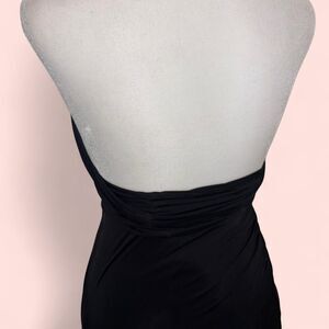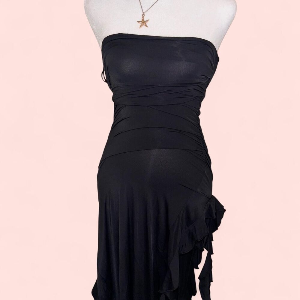 Black strapless midi dress with ruffle detail #midi #ruffles