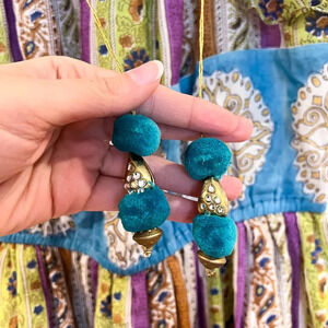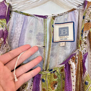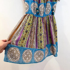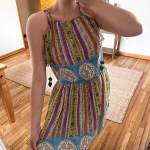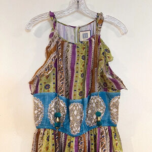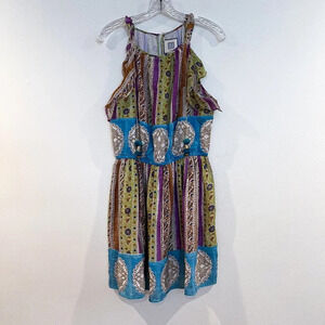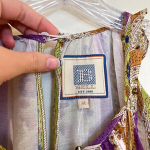 Bell by Alicia Bell Blue Green Silk Blend Bohemian Floral Halter Cinched Mini Dress M NWOT